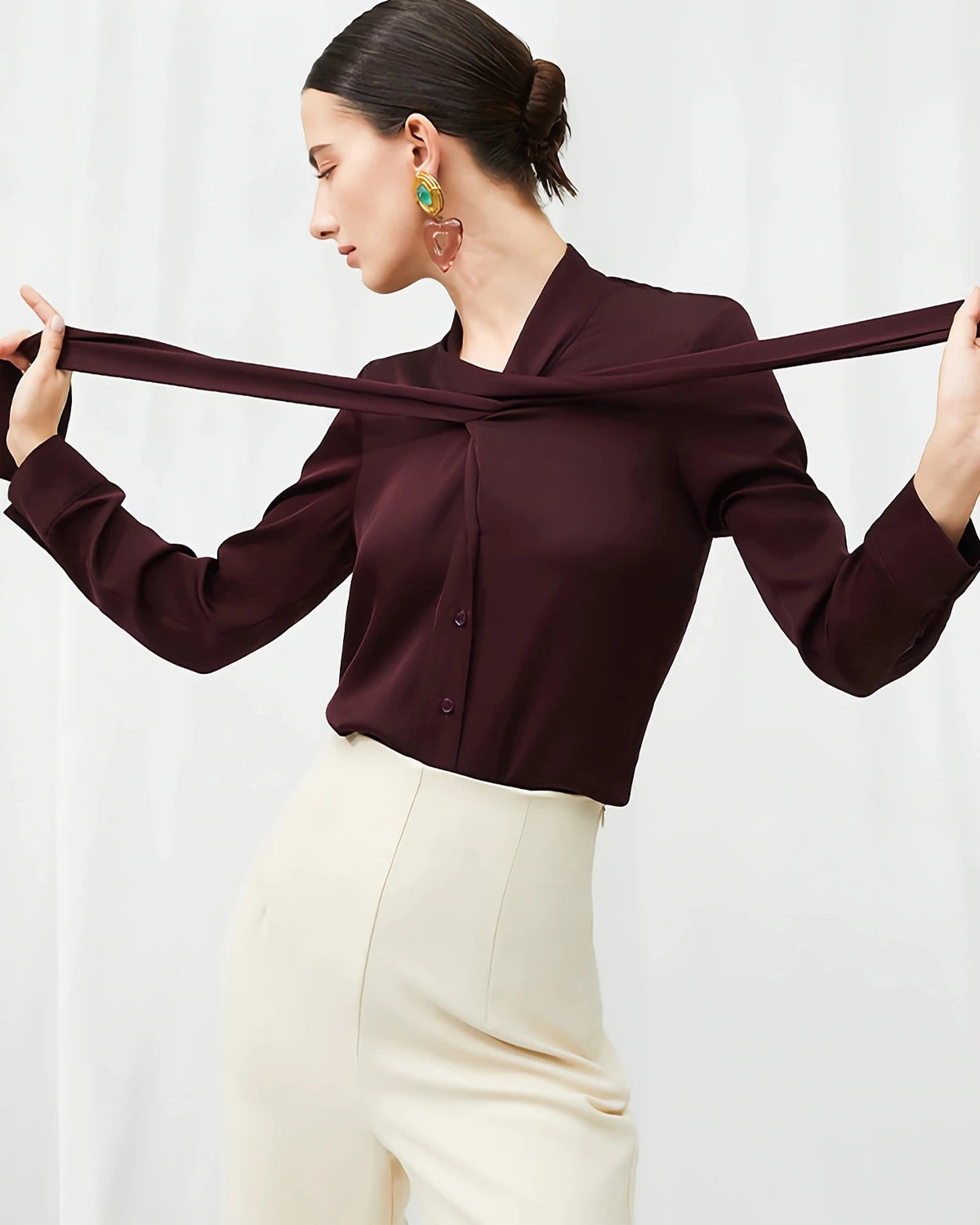 Le détail raffiné du nœud apporte de la polyvalence — portez-le comme un chemisier lavallière pour un look sophistiqué, ou desserré pour une allure décontractée mais chic.