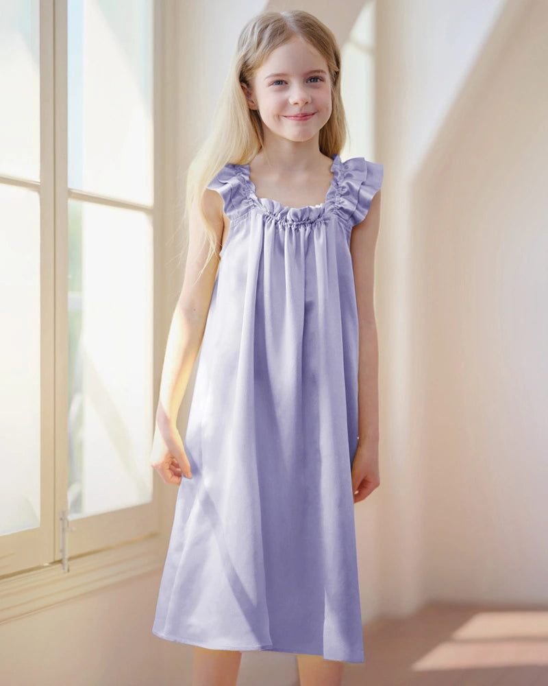 Pour les filles qui aiment les vêtements de nuit doux et légers, la chemise de nuit en soie DaisySilk avec manches à double volants offre un mélange charmant de confort et d’élégance. Cette robe de nuit en soie pour fille est confectionnée en soie de mûrier premium, une fibre naturellement respirante et délicate, souvent recommandée pour les enfants à la peau sensible grâce à sa texture lisse et à faible friction.