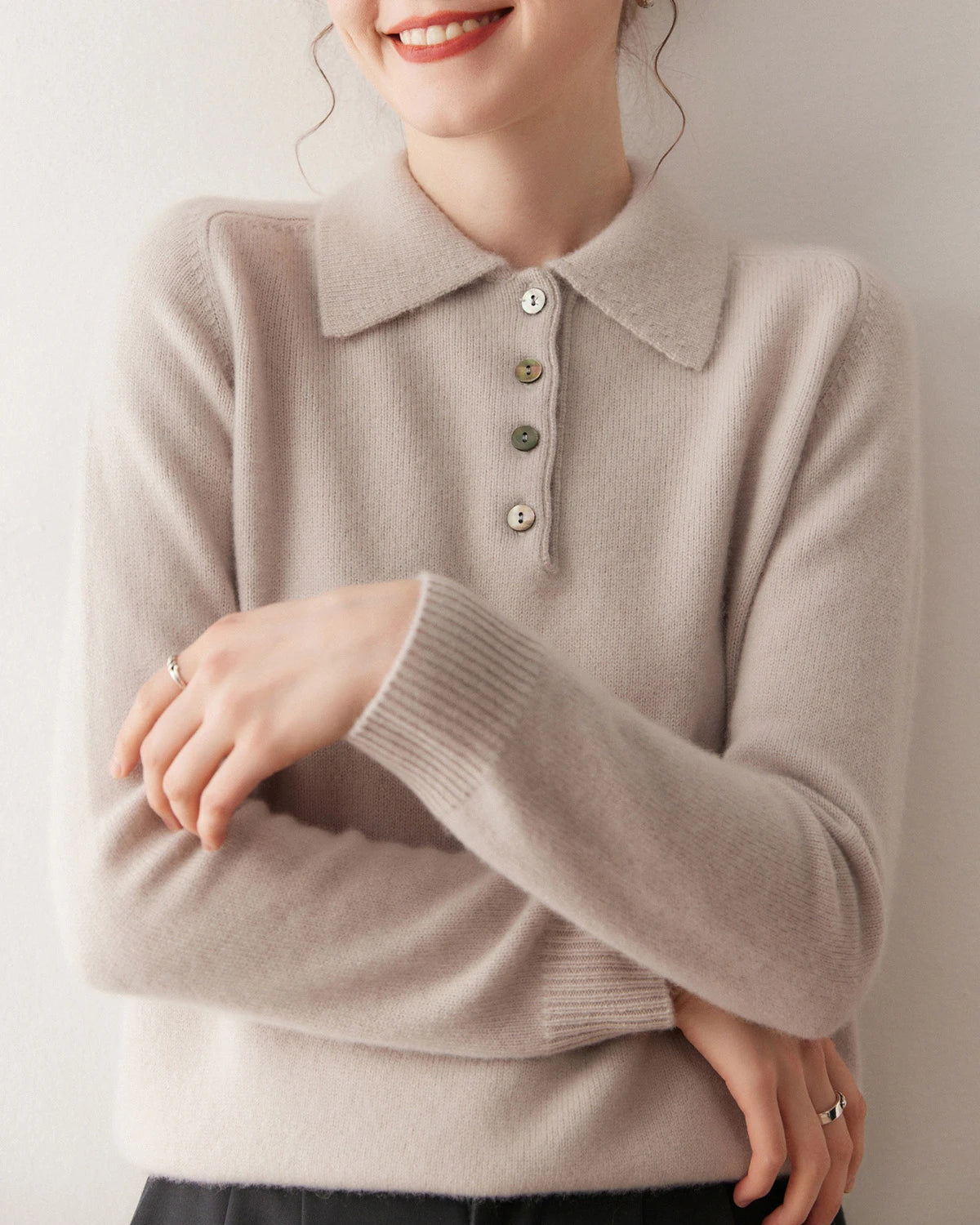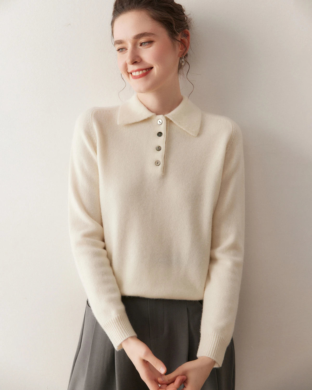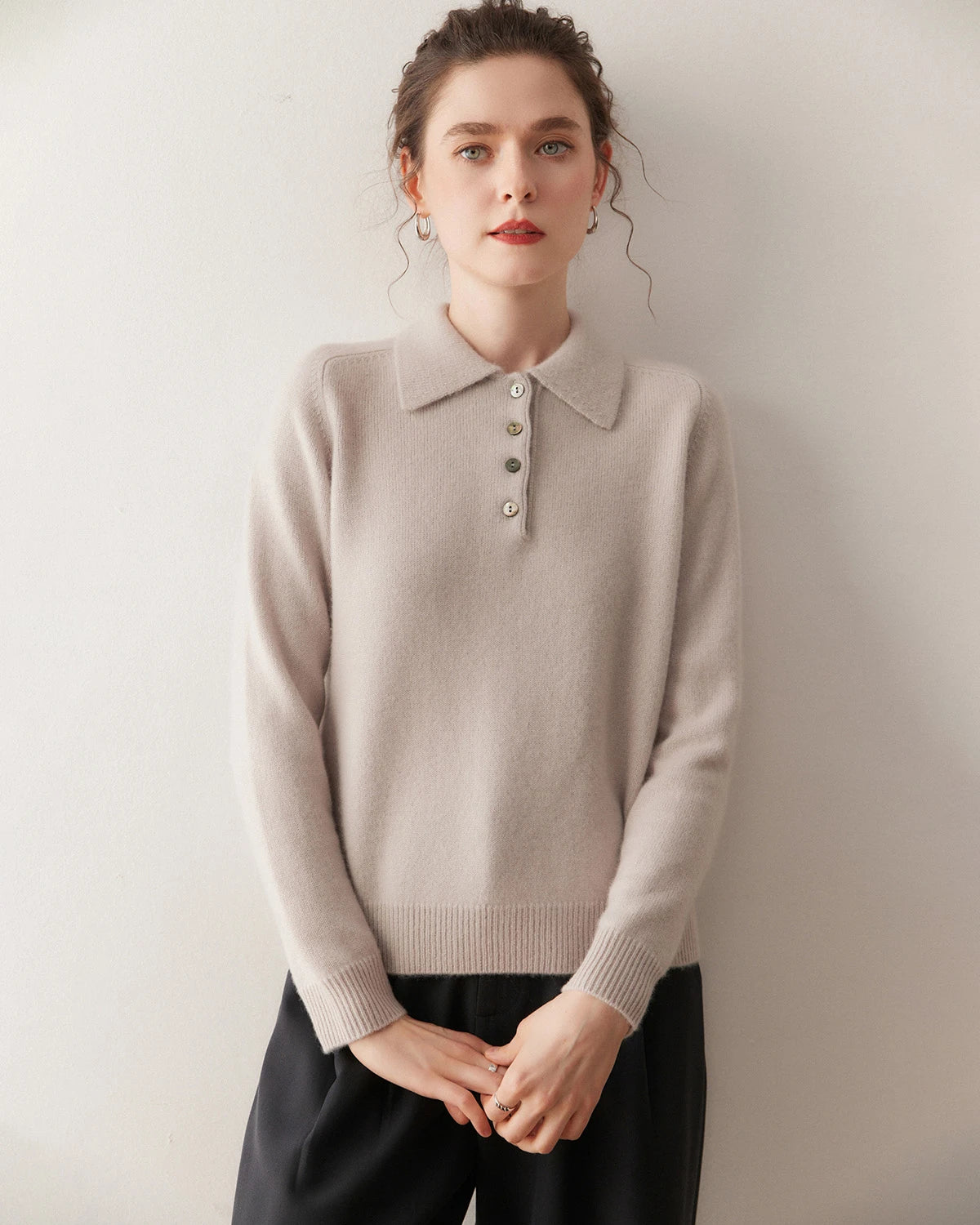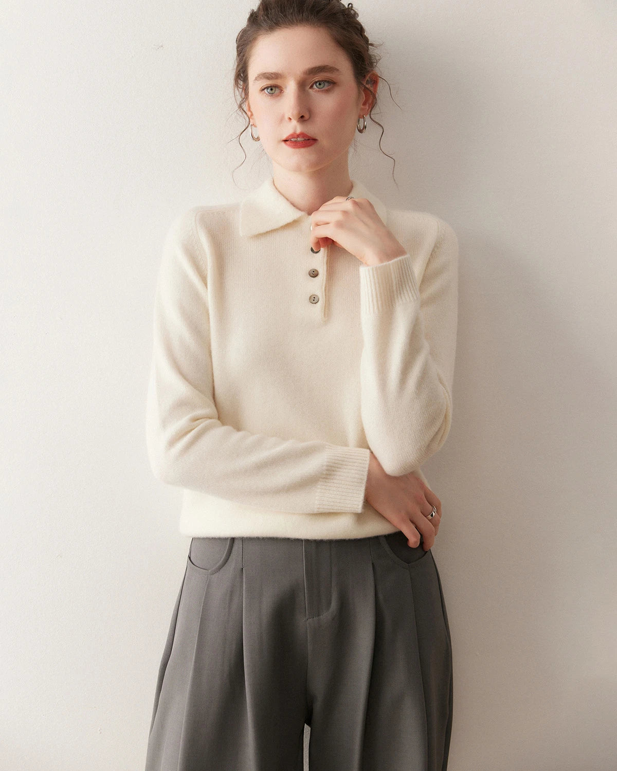 Doté d’un col polo avec patte de boutonnage à moitié et boutons en nacre naturels, ce pull en cachemire allie élégance et sophistication décontractée. L’épaule selle classique améliore la structure et le style, en accord avec les tendances des pulls en cachemire pour femmes, pull à col roulé en cachemire et collections de cardigans chics en cachemire pour femmes.