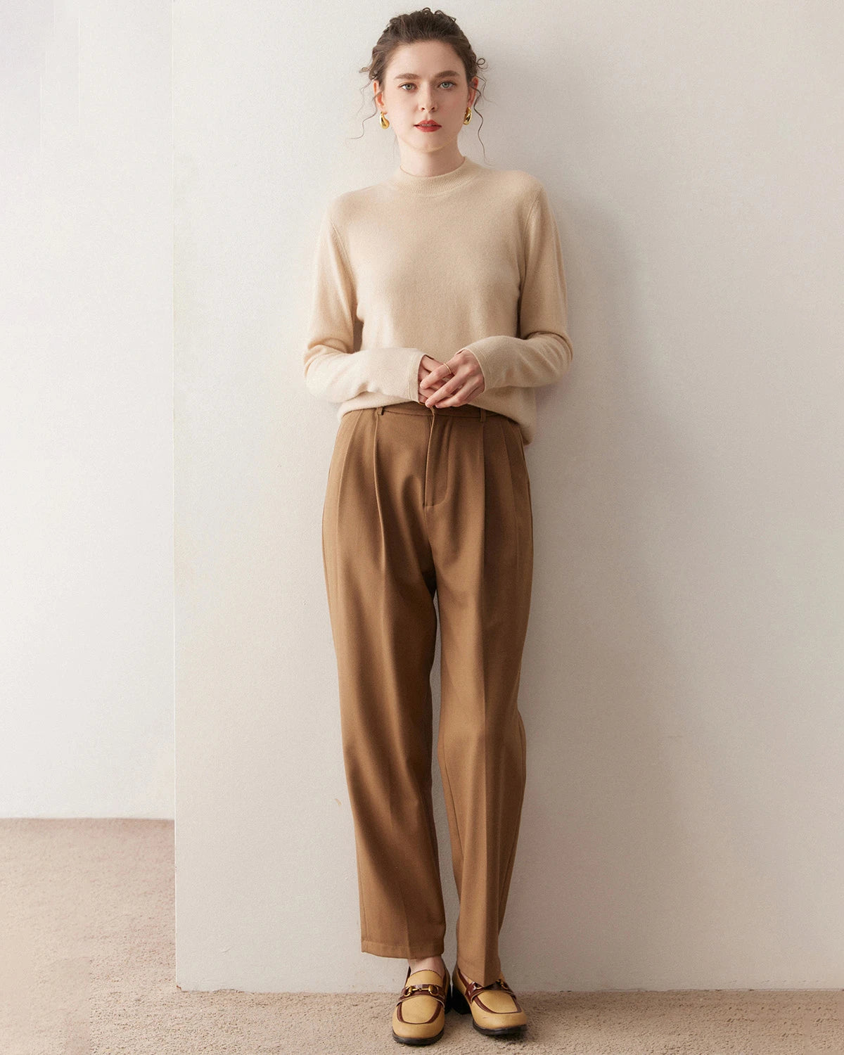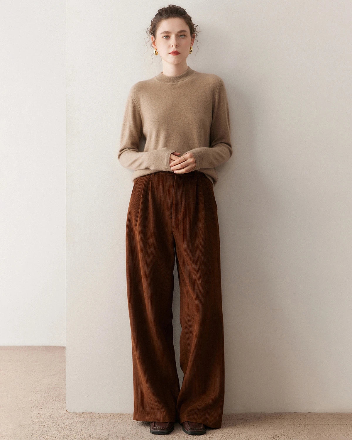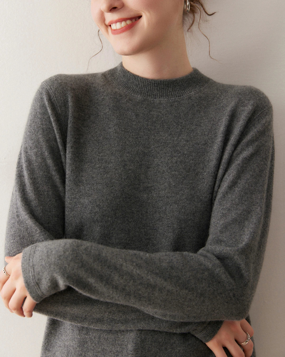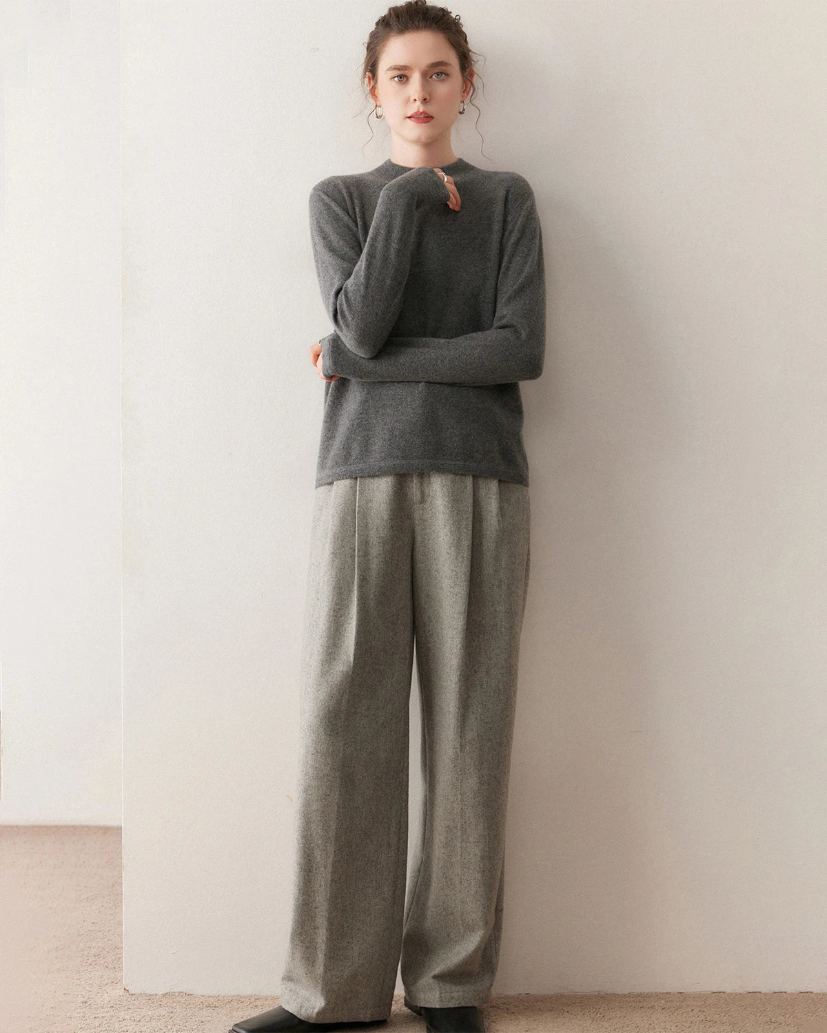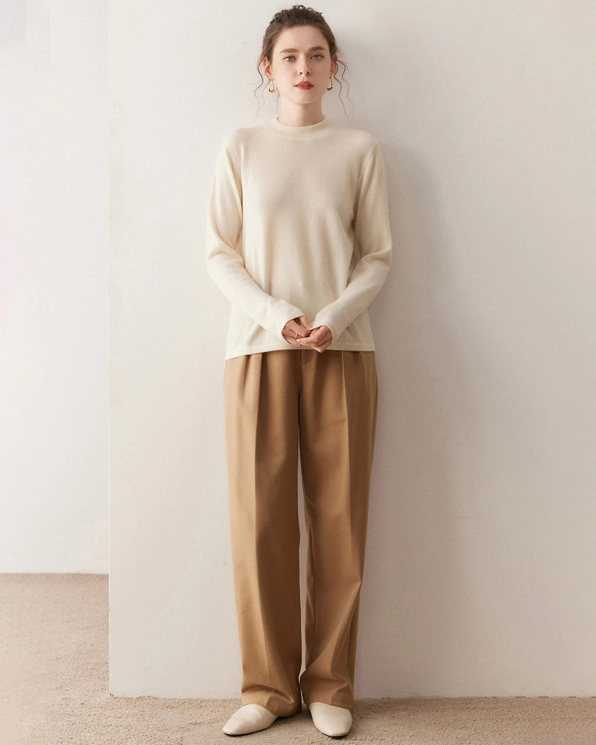 Ce pull en cachemire présente un col montant raffiné et des coutures plates lisses — la même technique utilisée pour les T-shirts haut de gamme — pour un look à la fois décontracté et élégant. Sa coupe minimaliste en fait l’un des pulls en cachemire pour femme les plus polyvalents de votre garde-robe.