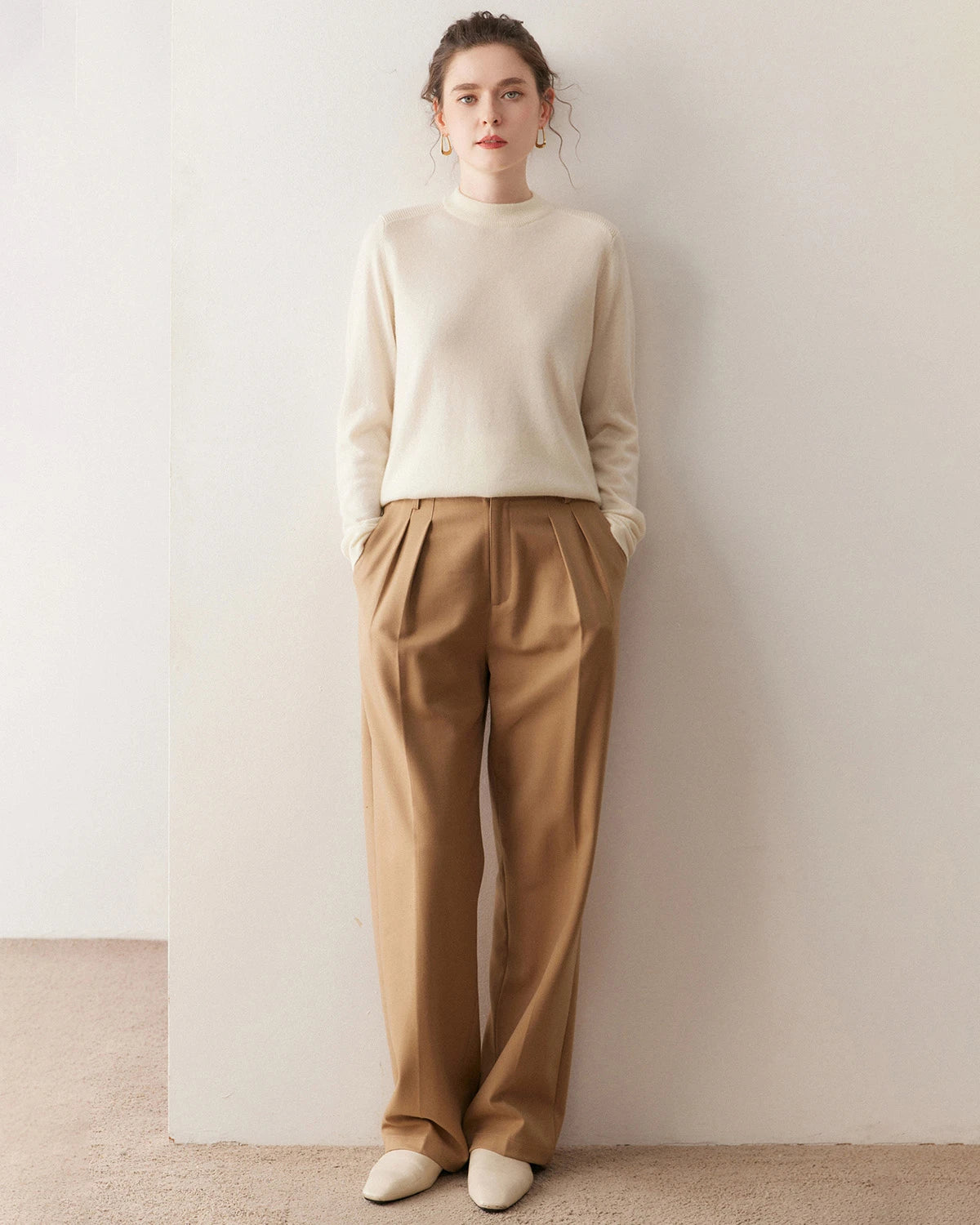 Issu du sous-poil fin des chèvres cachemire, le cachemire est plus fin, plus doux et plus léger que la laine. Ces qualités naturelles confèrent au cachemire sa chaleur, sa douceur inégalée et sa capacité à garder sa forme. Les fibres de laine, avec leurs écailles plus grossières, ont tendance à s’entremêler et à rétrécir lorsqu’elles sont exposées à l’eau et au frottement. En revanche, le cachemire est moins sujet au rétrécissement ou à l’élasticité, ce qui rend les pulls en cachemire durables, polyvalents et parfaits pour le superposition par temps froid.