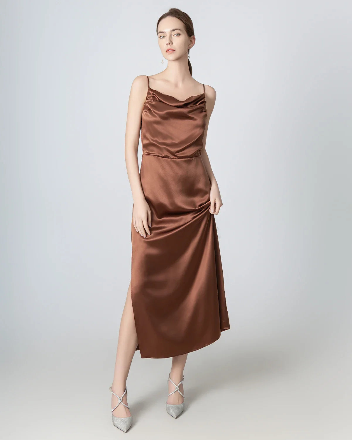 Que vous dansiez toute la nuit lors du bal, marchiez vers l'autel en tant que mariée radieuse, ou soyez aux côtés de votre meilleure amie en tant que demoiselle d'honneur, cette robe exquise ne manquera pas de marquer les esprits. Élevez votre tenue pour des occasions spéciales avec l'élégance intemporelle de notre robe maxi en soie à col bénitier et plissé.