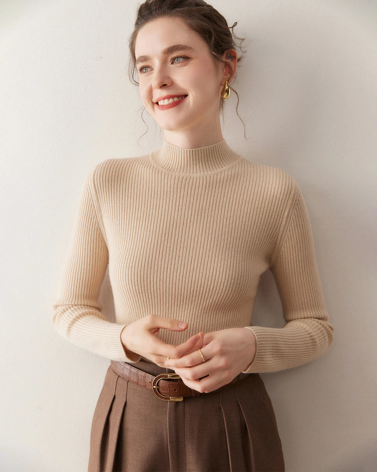 Confectionné en 100 % cachemire de qualité supérieure, ce pull en cachemire pour femme offre une douceur exceptionnelle sur la peau. Le tricot à fines côtes améliore l’élasticité et la tenue de la forme, créant une silhouette lisse et élégante — un véritable pull en cachemire de luxe.